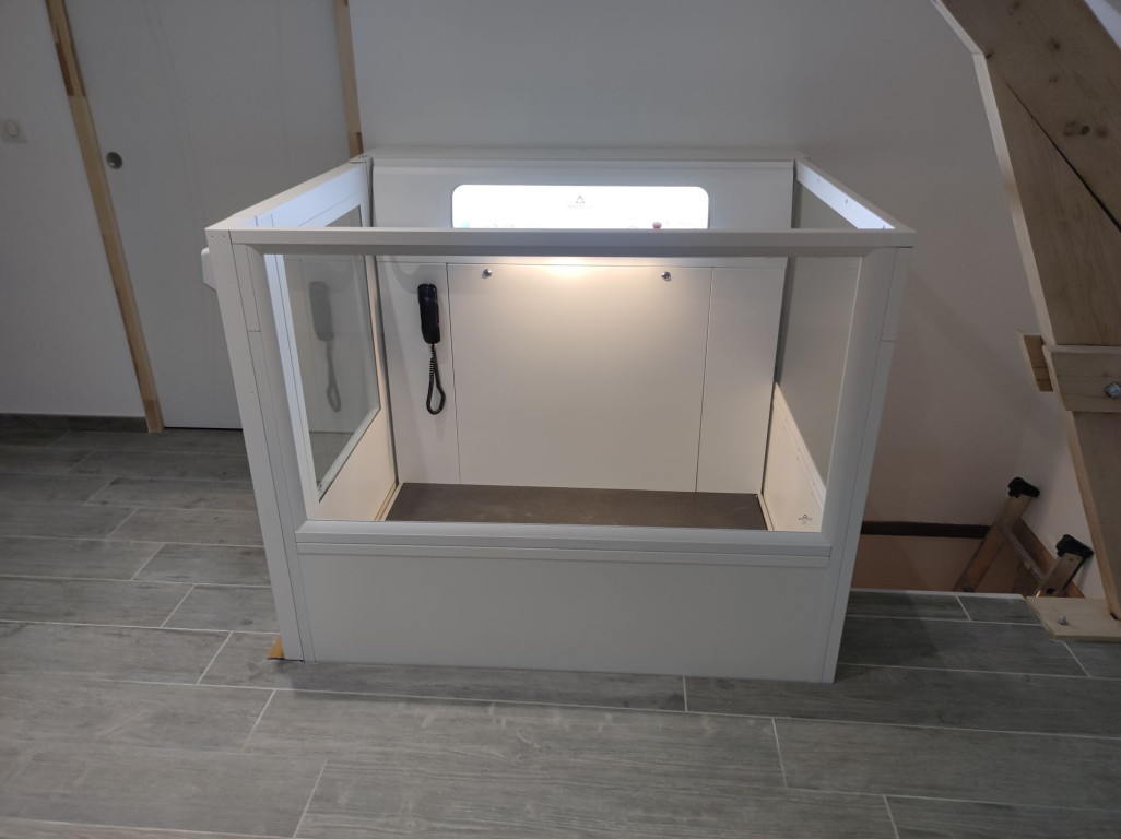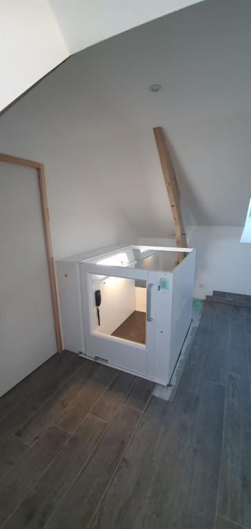 ETS MENANTEAU, votre spécialiste de l'accessibilité en Sarthe, a géré l'installation chez de jeunes particuliers d'un ascenseur privatif à vis sans fin. Avec son portillon au dernier palier, l'installation sous le rampant n'est pas un obstacle. En plus d'apporter une parfaite solution d'accessibilité, l'équipement installé valorise leur habitat.