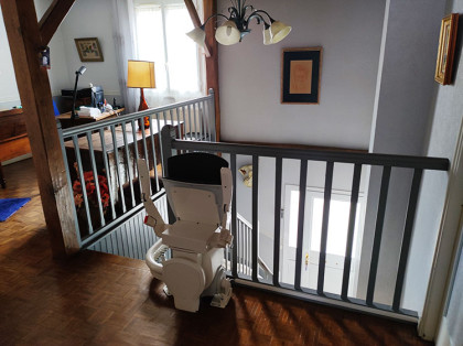 Afin d’anticiper le vieillissement, ces clients ont équipés toute leur maison, enclin à des pertes temporaires d’équilibre le client à préféré installer le monte escaliers en premier